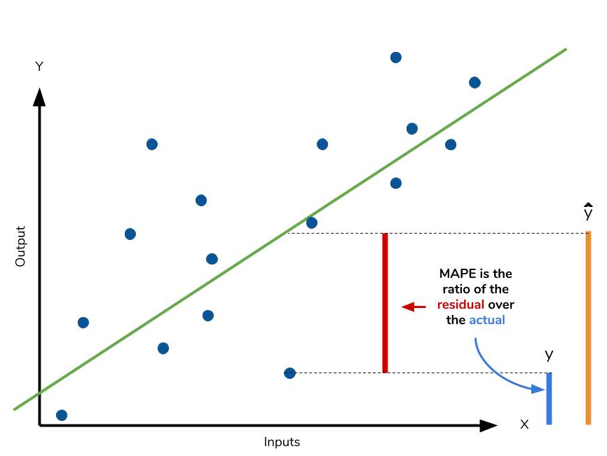 - MAPE의 값은 Y값에 의존적인 경향이 강하다 . 이를 보안하기 위해 고안된 평가모델이다.