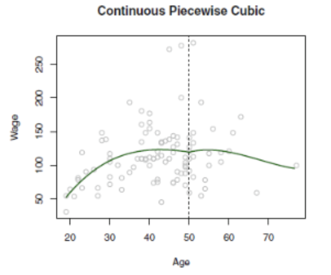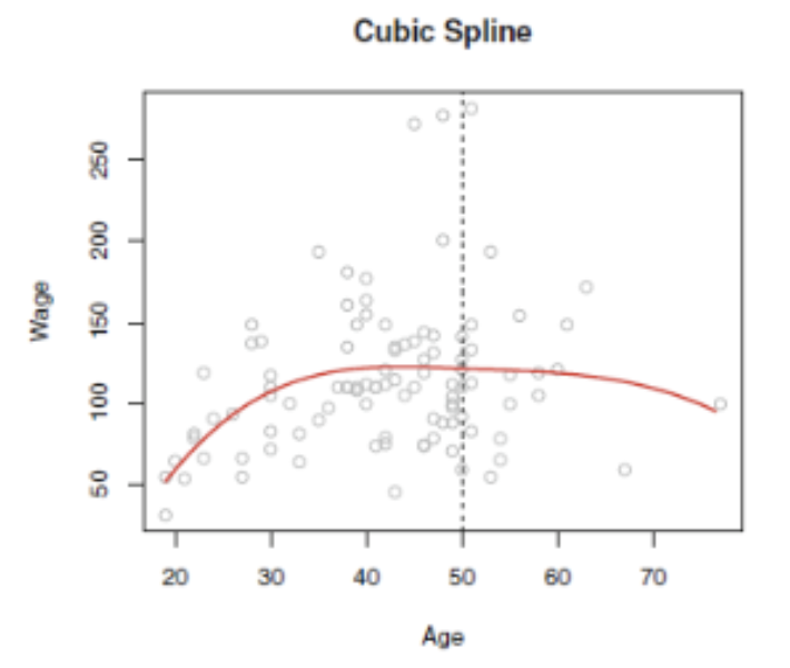 즉 spline은 아니란 소리이며 또한 age가 50인 지점을 knots라고 말하게 된다.