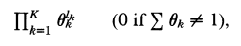 만약 Θ의 Prior distribution이 아래의 두번째 Θ식에 비례하게 된다면 Θ의 posterior distribution은 아래의 세번째 Θ에 비례하는 K-1 variate Dirichlet distribution이 된다.