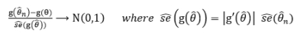 또 이와 관련된 개념으로 delta method가 존재하는데, 이는 theta의 분포가 아닌 theta를 포함한 함수의 분포를 구할 때 사용할 수 있다.