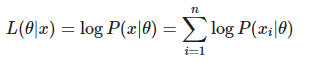 하지만 위의 식은 곱셈으로 이루어져있기 때문에 연산상 미분을 적용하기가 쉽지않다. 그렇기 때문에 곱을 합으로 변환해주는 Log를 취하여 그값이 최소가 되는 값을 구하여 Maximum likelihood를 만드는 값을 구하게 되며 Log likelihood라고 한다 .