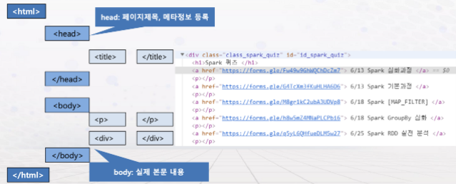 즉 위에서 구조에따라 다시 한번 작성하면 수집한 url 코드를 실행시 해당 url로 Request 메세지가 전송되고 절차에 따라 HTML, XML페이지를 읽을 수 있도록 하게 된다. 이후 HTML, XML페이지의 구문 분석후 데이터를 찾아 추출하게 된다 .