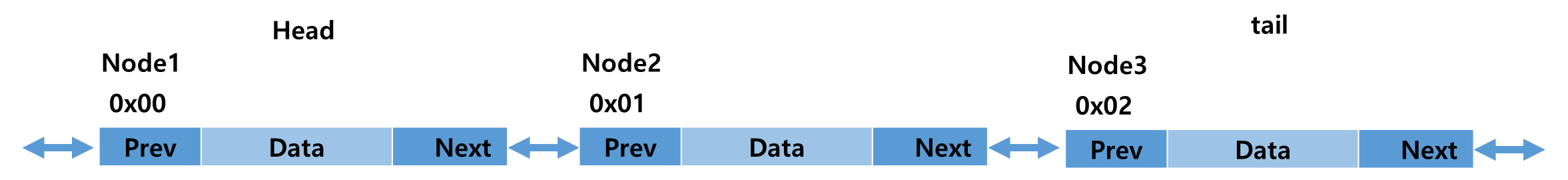 Double linked list는 아래의 Structure와 같이 노드안에 Data와 Addr을 저장하는 Pointer 공간으로 이루어져있고 Pointer 변수는 이전노드를 가리키는 Prev 포인터와 다음 노드를 가리키는 Next구조로 되어있다.